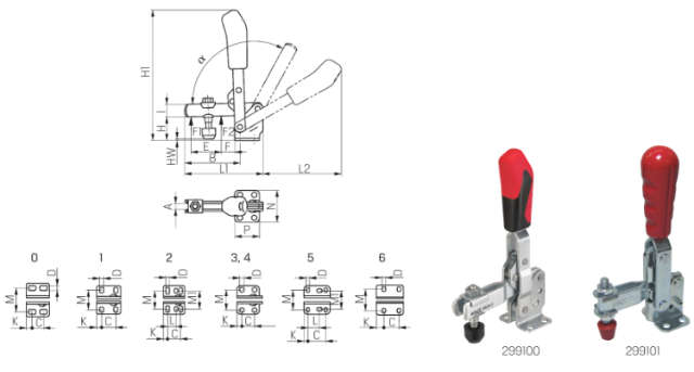 - Senkrechtspanner mit verdrehgesicherte Buchsen (außer Größe 1)